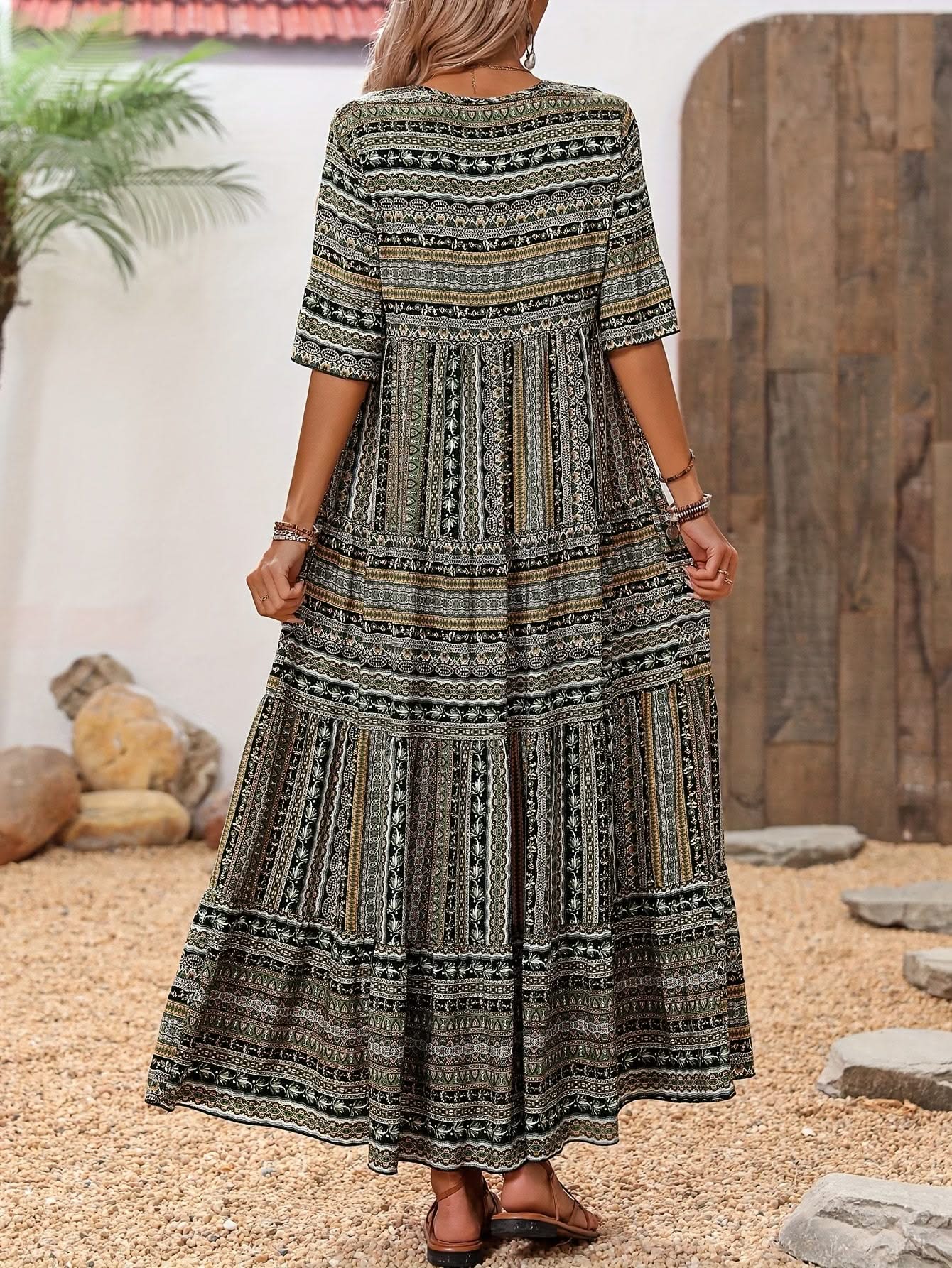 Liora – Geometric V-Neck Tunic Cotton Dress