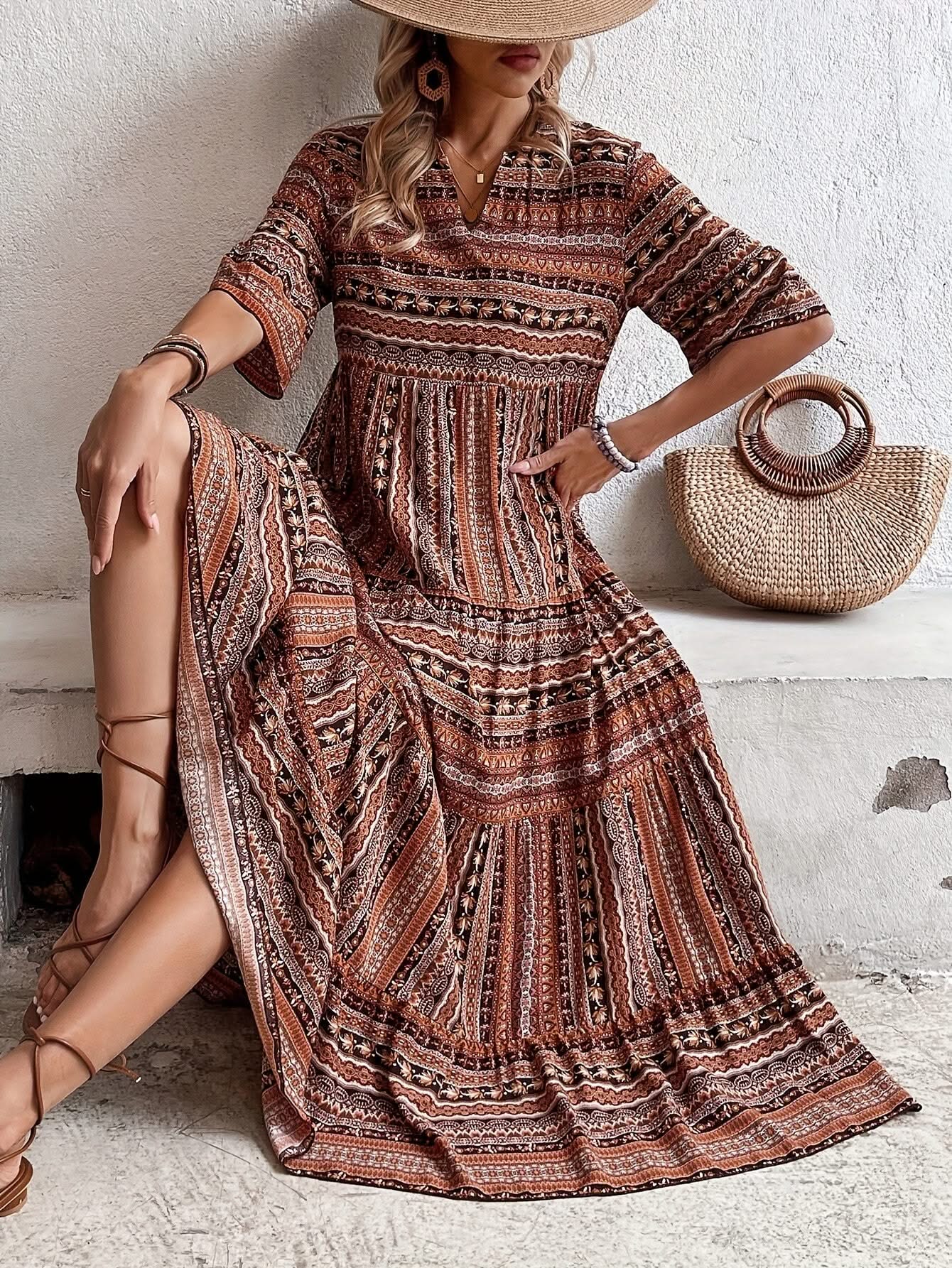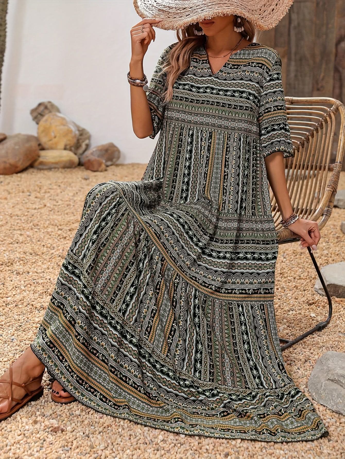 Why You’ll Love the Liora – Geometric V-Neck Tunic Cotton Dress
